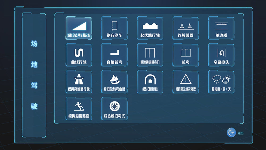 具有多場景、多模式、多科目的訓練功能,訓練科目參考《某崗前訓練大綱》和大車駕駛訓練場地建設標準,滿足競技、比武考核的要求。